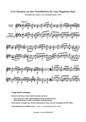 Zwei Menuette für Anna Magdalena Bach - Sheet Music for guitar J.S. Bach (arr. Christoph Dalitz)