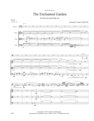 Year Of Composition: 2016 / Duration: 10´05" / THE ENCHANTED GARDEN for bassoon, violin, viola, and cello by Howard J. Buss was composed for Keith Sweger and the 2016 IDRS Conference. The character of the music is meditative and reflective, Buss states, "