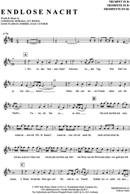 Endlose Nacht - Noten für Trompete in B König der Löwen (Musical)