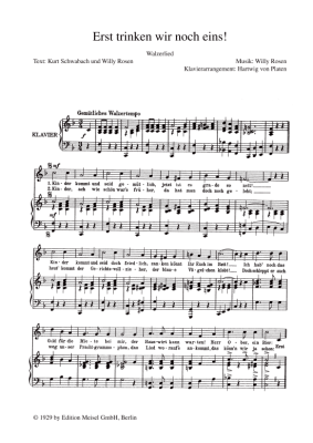Erst trinken wir noch eins - Noten für Klavier und Gesang
