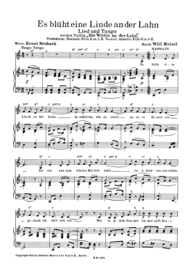Es blüht eine Linde an der Lahn - Noten für Klavier und Gesang
