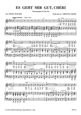 Es geht mir gut, Cheri - Noten für Klavier und Gesang Mireille Mathieu