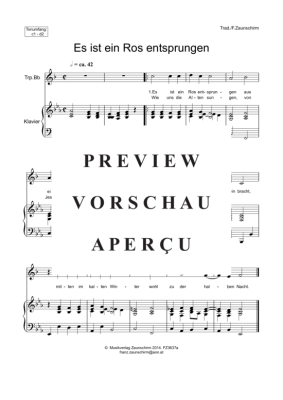 Es ist ein Ros entsprungen - Noten für Trompete in B + Klavier/Orgel Traditional (Zaunschirm)