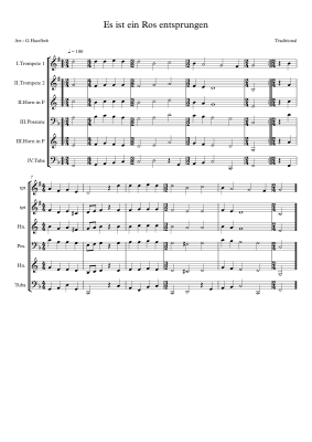 Es ist ein Ros entsprungen - Noten fĂŒr BlechblĂ€serquartett Traditional