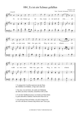 Es ist ein Schnee gefallen - Noten für Klavier und Gesang Melodie 1535