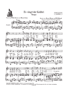 Es singt der Kolibri - Noten für Klavier und Gesang