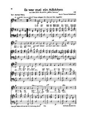 Es war mal ein Mädchen - Noten für Klavier und Gesang aus: Heißer Sommer (Film, 1968)