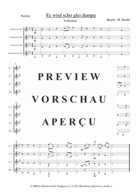 Es wird scho glei dumpa - Noten für Klarinettenquartett Traditional