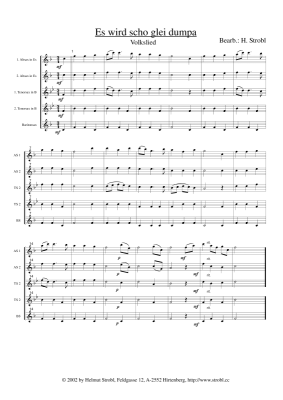 Es wird scho glei dumpa - Noten für Saxophonquintett AATTB Traditional
