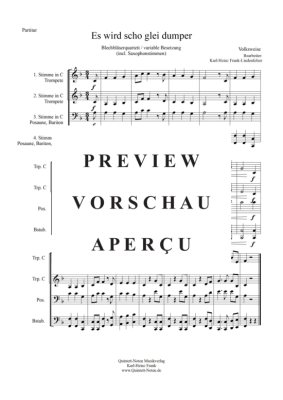 Es wird scho glei dumper, Blechbläser Quartett/Ensemble - Noten für variable Besetzung Traditional/Karl-Heinz Frank-Lindenfelser