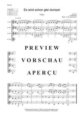 Es wird scho glei dumper - Noten für Horn-Quartett F-Dur Franz Zaunschirm