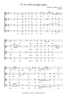 Es wollt ein Jäger jagen - Noten für Gemischter Chor Matthias Greitter Volkslied