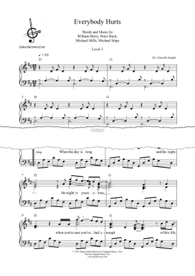 Everybody Hurts - Noten für Klavier R.E.M.