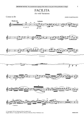 Facilita (Air with Variations) - Noten für Klavier, Trompete John Hartmann