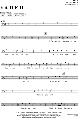 Faded - Noten für Violon-Cello Alan Walker