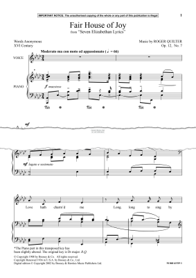 Fair House Of Joy from Seven Elizabethan Lyrics - Noten für Gesang, Klavier Roger Quilter