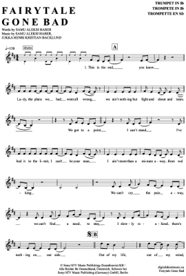Fairytale Gone Bad - Noten für Trompete in B Sunrise Avenue