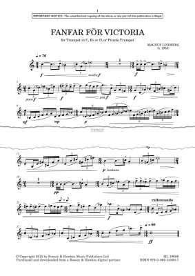 Fanfar för Victoria - Noten für Trompete Magnus Lindberg