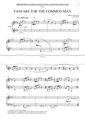 Fanfare For The Common Man - Noten für Klavier Aaron Copland