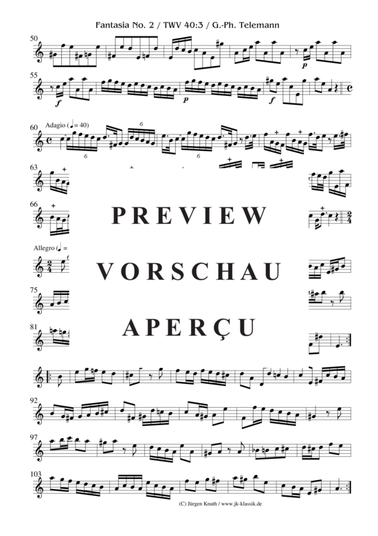 Fantasie Nr. 2 für Solo Flöte TWV 40 : 3 (Querflöte/Violine/Oboe Solo)