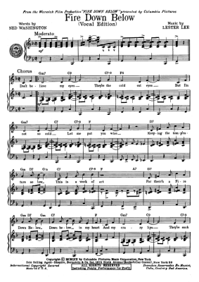Fire Down Below - Noten für Klavier und Gesang From The Movie "Fire Down Below"