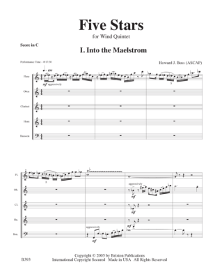 Year Of Composition: 2004 / Duration: 17´10" / Each of the 5 picturesque movements features a different member of the ensemble: I. Into the Maelstrom features the flute, II. A Distant Glow features the horn, III. Orbits featu