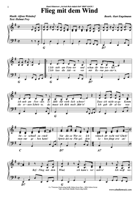 Flieg mit dem Wind - Noten für Klavier und Gesang Hansi Hinterseer