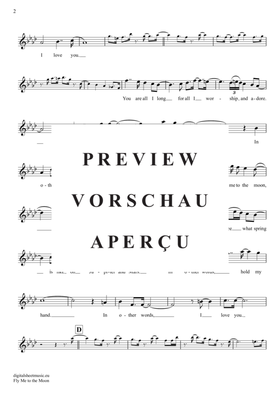 | Am 12. Dezember 1915 wurde Francis Albert „Frank“ Sinatra in Hoboken, New Jersey geboren. Er sollte zu dem bekanntesten amerikanischen Sänger Schauspieler und Entertainer der Swing-Ära werden. Er gehört neben Dean Martin und Sammy Davis Jr. zu den berühmtesten drei Entertainern Amerikas, dem sogenannten „Rat Pack“. Sinatra hatte im Laufe seiner Karriere unzählige Hits. Die international bekanntesten sind „Strangers in the Night“, „New York, New York“ und eben „Fly Me to the Moon“ aus dem Jahr 1964. Der Jazz- Standard wurde geschrieben von Bart Howard und 1954 unter dem Titel „In Other Words“ veröffentlicht. Es gibt davon mehrere hundert Versionen in den unterschiedlichsten Stilrichtungen. Die Version "Fly me to the moon" von Frank Sinatra wurde von Quincy Jones arrangiert und mit der Count- Basie-Band eingespielt. Im Mai 1969 wurde diese Aufnahme von der Crew von Apollo 10 während ihres Fluges um den Mond abgespielt. Im Juli 1969 wurde der Song während einer Fernsehübertragung live von der Bodenstation übertragen und so weltweit bekannt. (Quelle: Wikipedia) Das Arrangement basiert auf der Aufnahme eines der vielen Live-Konzerte. Bemerkenswert sind die anspruchsvollen Klavier-Solos. Der Song lässt sich am schönsten mit einem Soloinstrument und der passenden Klavierbegleitung oder dem verfügbaren Playback nachspielen. Auf Grundlage der verschiedenen Bearbeitungen für Klavier, Gesang, Keyboard, E-Bass und Melodieinstrumente kann auch eine individuelle Combo zusammengestellt werden. | ||