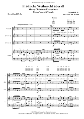 Fröhliche Weihnacht überall - Noten für 1-3 Gesangsstimmen + Klavier Traditional