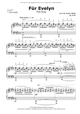 Für Evelyn - Noten für Klavier Solo Gert Walter