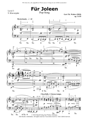 Für Joleen - Noten für Klavier Solo Gert Walter