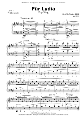 Für Lydia - Noten für Klavier Solo Gert Walter