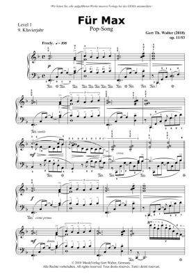 Für Max - Noten für Klavier Solo Gert Walter