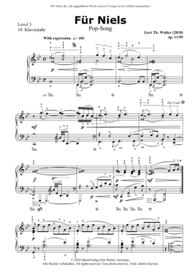 Für Niels - Noten für Klavier Solo Gert Walter