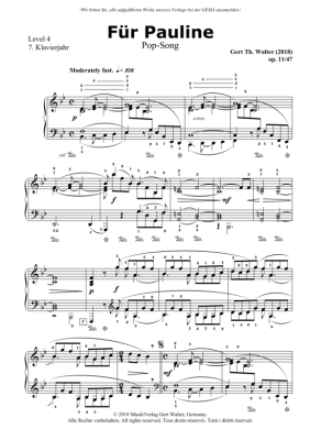 Für Pauline - Noten für Klavier Solo Gert Walter