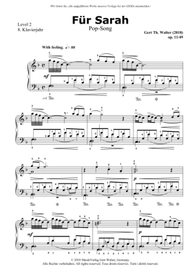 Für Sarah - Noten für Klavier Solo Gert Walter
