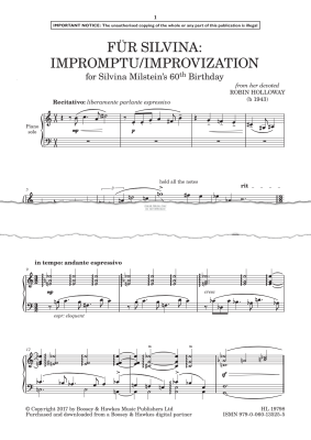 Für Silvina: Impromptu/Improvization - Noten für Klavier Robin Holloway