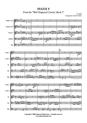 Fuga Nr. 5 aus Wohltemp. Klavier 2 - Noten fĂŒr BlechblĂ€serquintett J. S. Bach