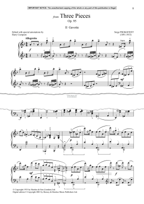 Gavotte from Three Pieces, Op. 95 - Noten für Klavier Serge Prokofieff