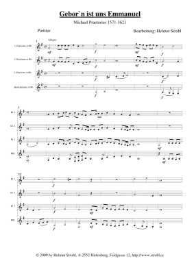 Geborn ist uns Emmanuel - Noten für Klarinettenquartett Michael Praetorius