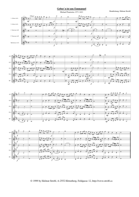 Geborn ist uns Emmanuel - Noten für Saxophonquintett AATTB Michael Praetorius