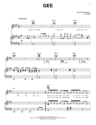 Gee - Noten für Gesang, Gitarre, Klavier Girls' Generation