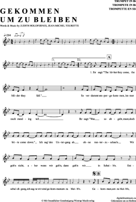 Gekommen Um Zu Bleiben - Noten für Trompete in B Wir Sind Helden