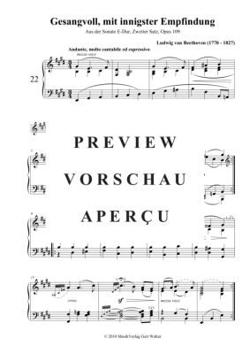 Gesangvoll, mit innigster Empfindung - Noten für Klavier Solo Ludwig van Beethoven