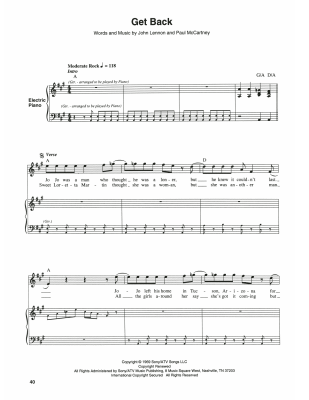Get Back - Noten für Keyboard The Beatles