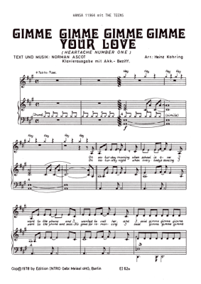 Gimme Gimme Gimme Gimme Your Love - Noten für Klavier und Gesang The Teens