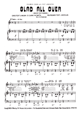 Glad All Over (Nicht zu fassen) - Noten für Klavier und Gesang Piet Lancaster