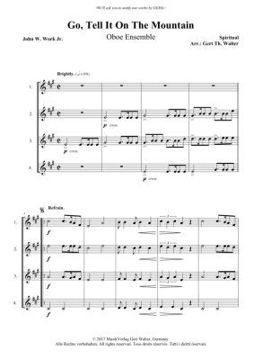Go Tell It On The Mountain - Noten für Oboen Quartett Spiritual