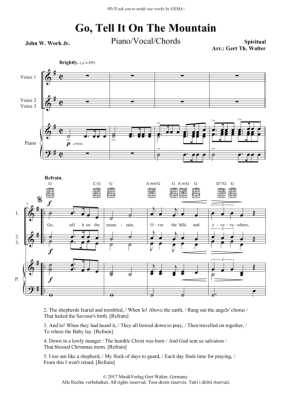 Go Tell It On The Mountain - Noten für Gesang 3-stimmig + Klavier Spiritual