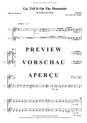Go Tell It On The Mountain - Noten für Flöte + Oboe Spiritual